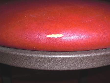 Ein Stuhl hat im Polster einen 1,8 cm langen Riss (siehe Foto